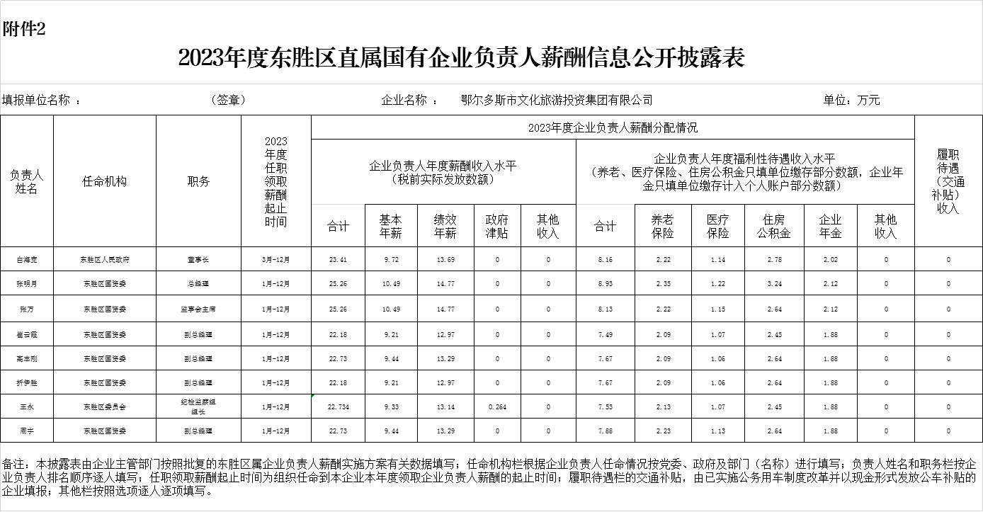 2023年度東勝區(qū)直屬國(guó)有企業(yè)負(fù)責(zé)人薪酬信息公開(kāi)披露表